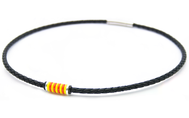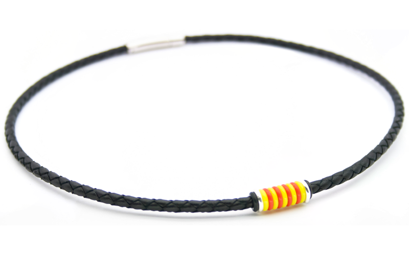 Comprar el Collar Català Trenat núm. 4. Collar amb la senyera, creat artesanamlent amb cuir, plata i hacer.
