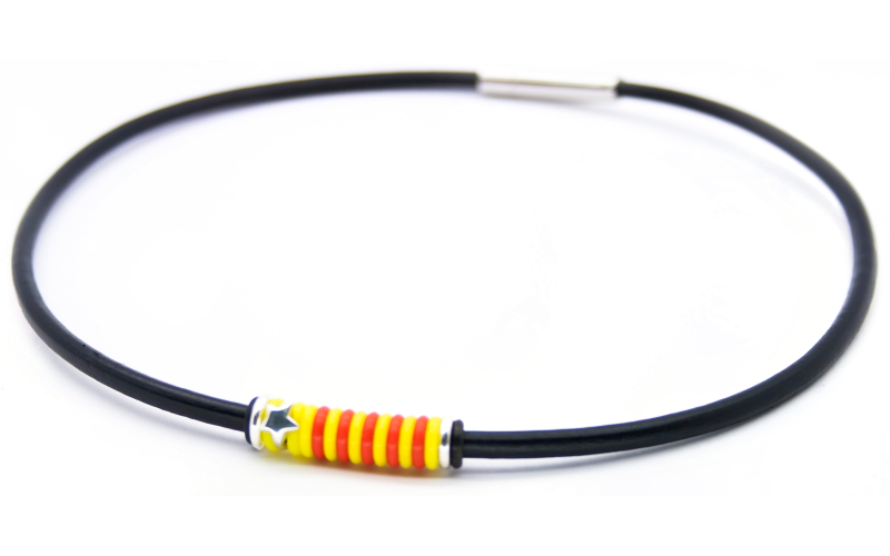 Collaret amb l'estelada groga, la versió independent. Creat artesanamlent amb cuir, plata i acer