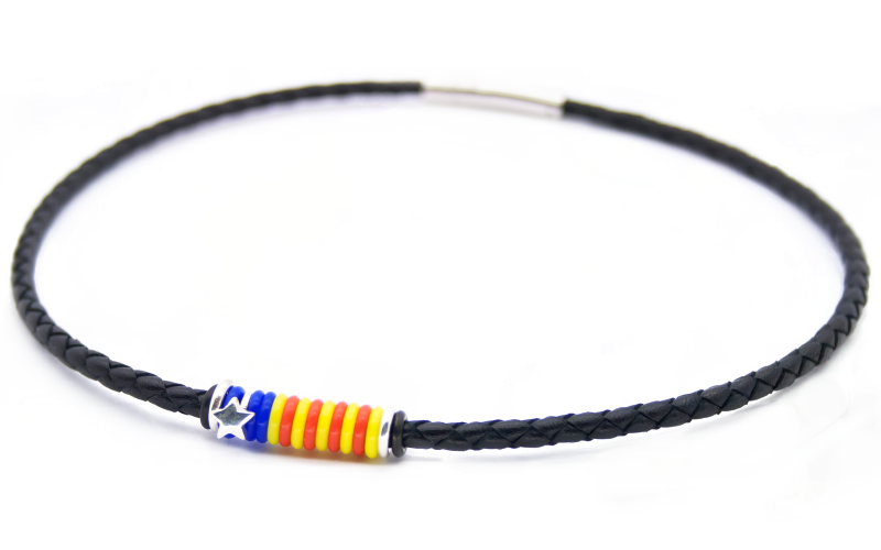 La versió independentista del Collaret Català. El collar català ha estat creat inspirant-nos amb l'èxit de la Polsera Catalana. Esta compost mitjançant elements naturals com el cuir i la plata i realitzant un treball artesanal, quidant i mimant cada peça i detall del collar.
