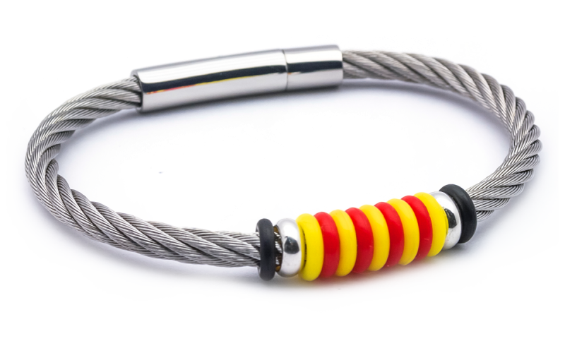 La Polsera Catalana està fabricada amb Acer Trenat. Aquest material aporta a la polsera rigidesa i durabilitat així doncs la polsera d'acer es pot mullar i rentar sense cap problema.