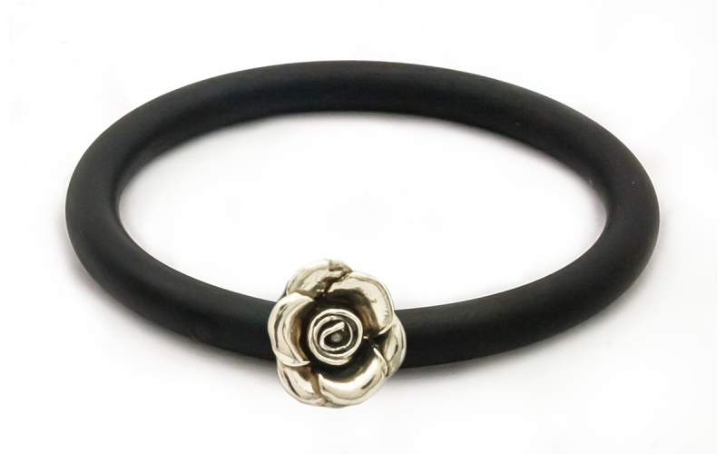 El tancament autoajustable de plata la fa increïblement pràctica: no cal encertar la mida exacta. El cautxú és lleuger i còmode per portar cada dia. Una alternativa original i duradora a la rosa tradicional de Sant Jordi.
