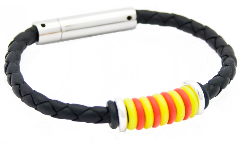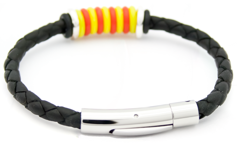 La versió trenada de la polsera catalana original és una de les preferides per la seva comoditat i resistència. El cuir trenat s'adapta al canell des del primer dia i guanya caràcter amb l'ús. Perfecta per a qui estima Catalunya amb discreció i elegància.