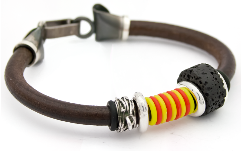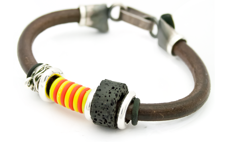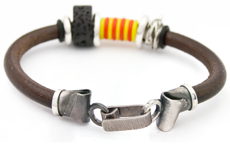 Comprar la Polsera Catalana Num 6 Niu, Volcà i Barretines. Polsera realitzada artesanalment amb cuir i plata.