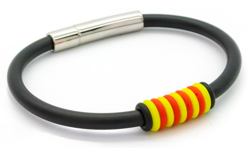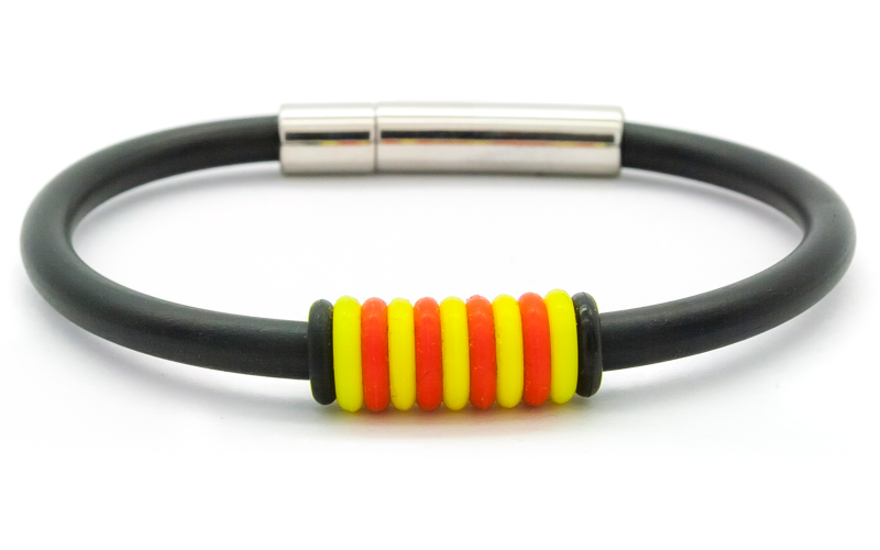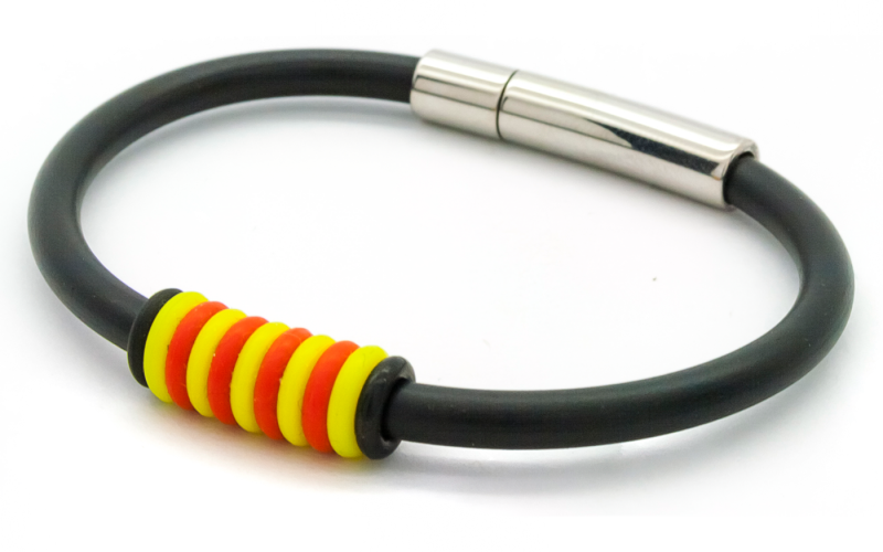 La polsera Eco-Cat es la versió econòmica de la Polsera Catalana, feta amb paracord 550, silicona i acer.
