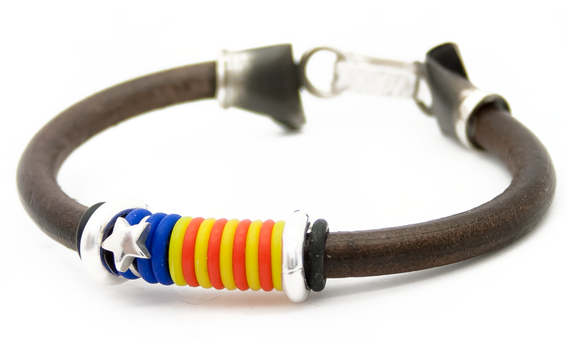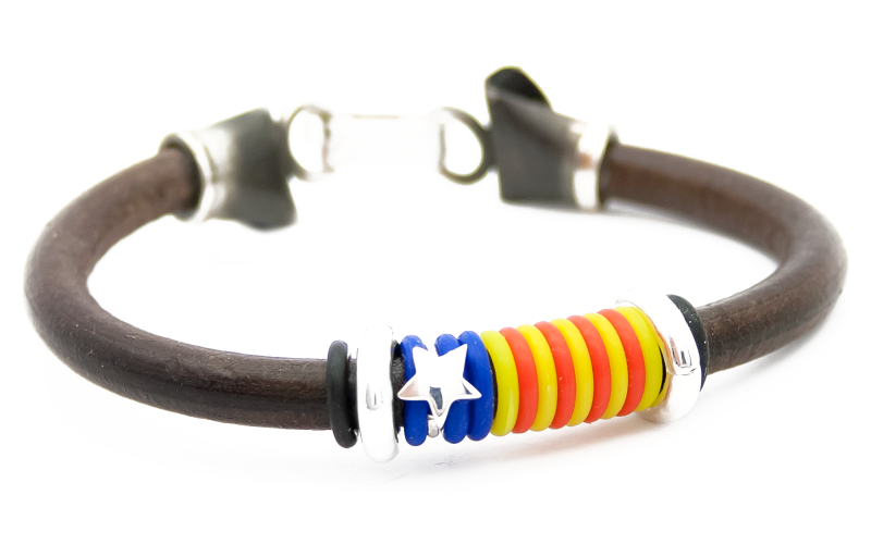 La Polsera Estelada, la versió independentista de la polsera catalana. Realitzada artesanalment amb cuir i plata